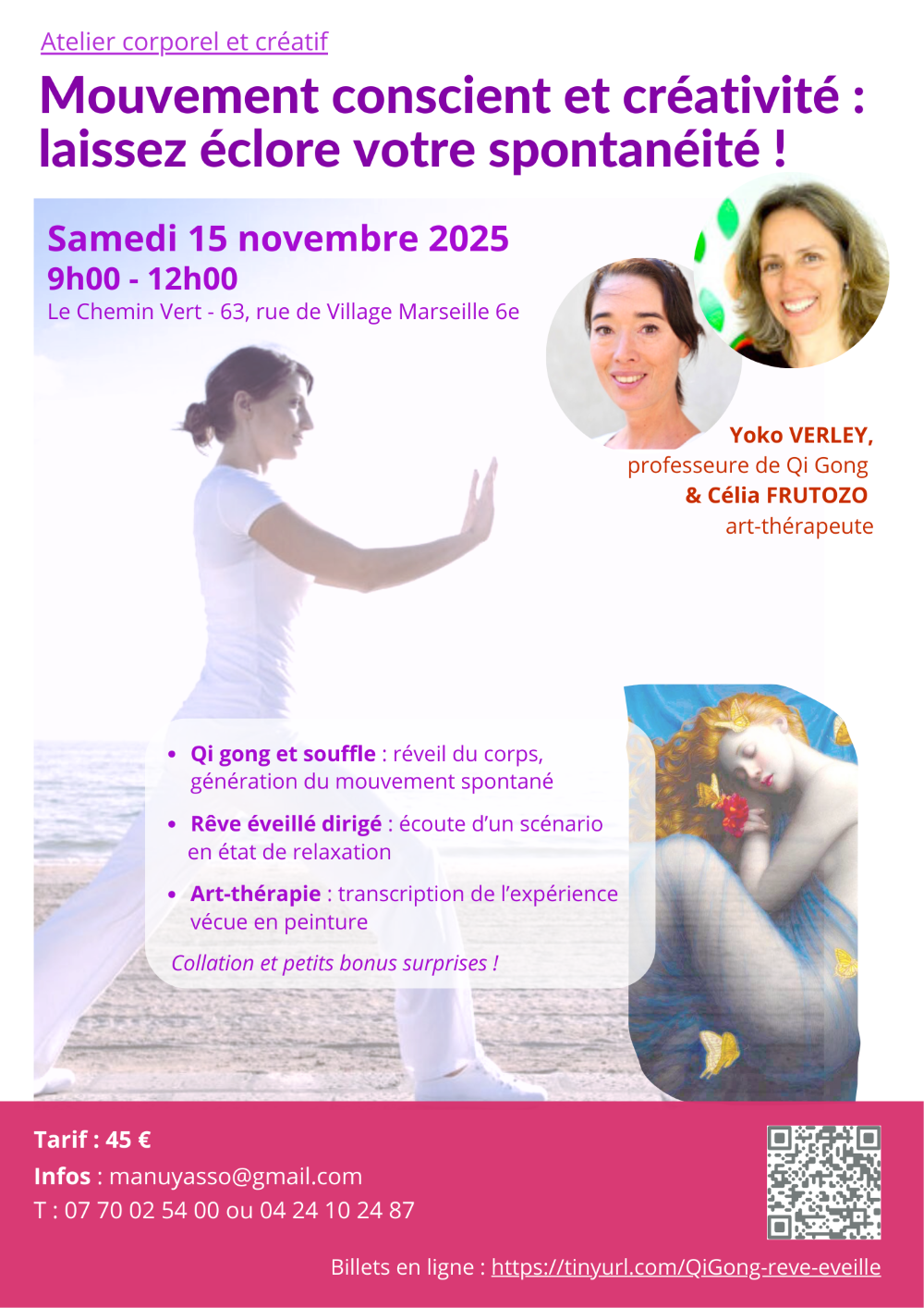 Avec Yoko Verley, enseignante de Qi gong et Tai chi, nous alternerons travail corporel et expression créative pour :